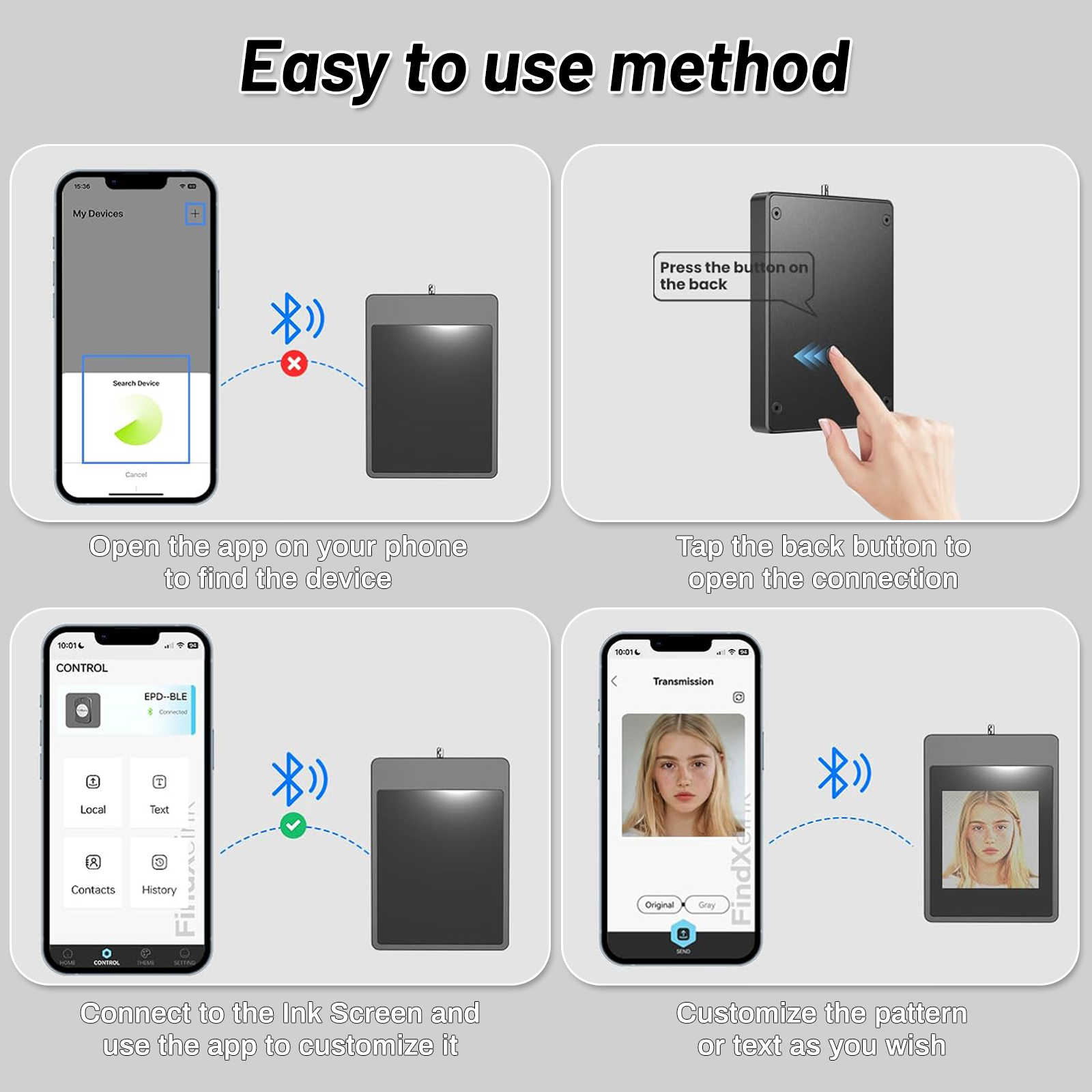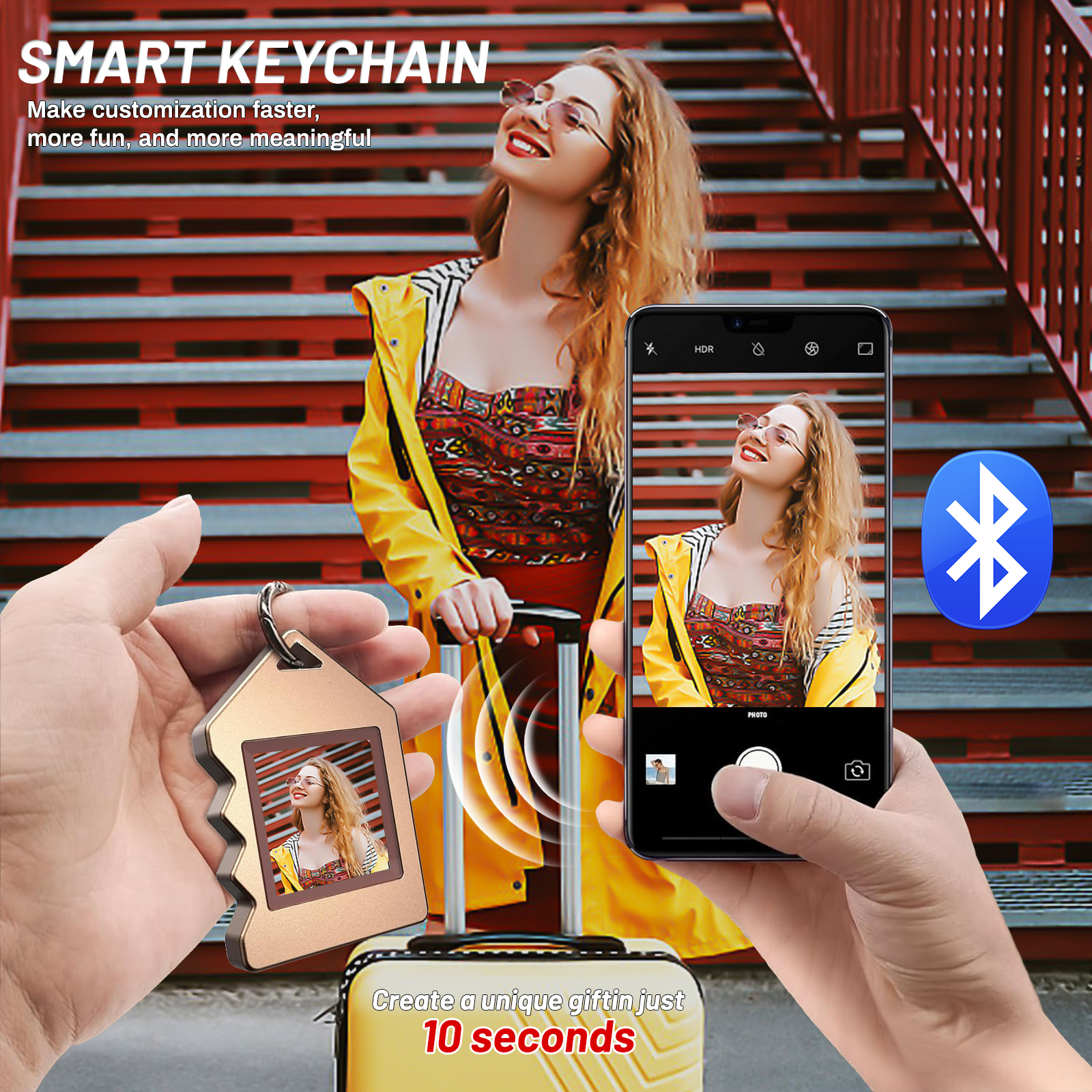 • PERSONALIZED PHOTO DISPLAY:Display personalized images or text on the high-definition e-ink screen with ease. Content can be changed anytime through the app, allowing you to showcase memorable photos, creative designs, or motivational quotes. This custom photo keychain lets you express your unique style effortlessly.